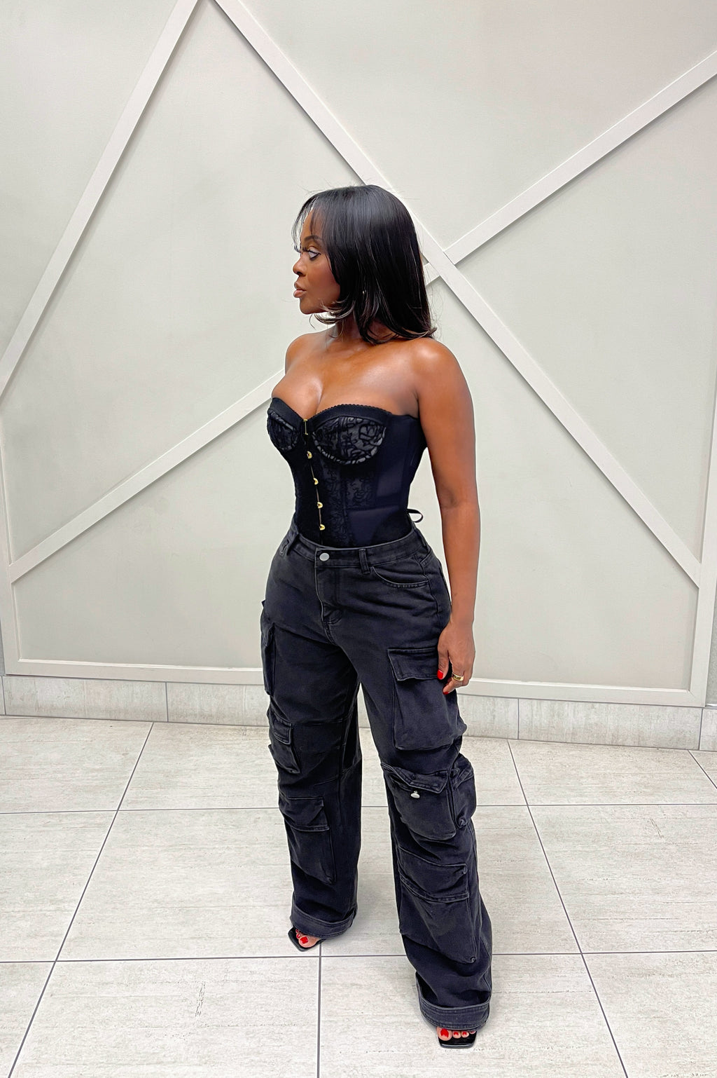 Model is wearing size “M” - styles with our “ After Dark” Lace Corset Top