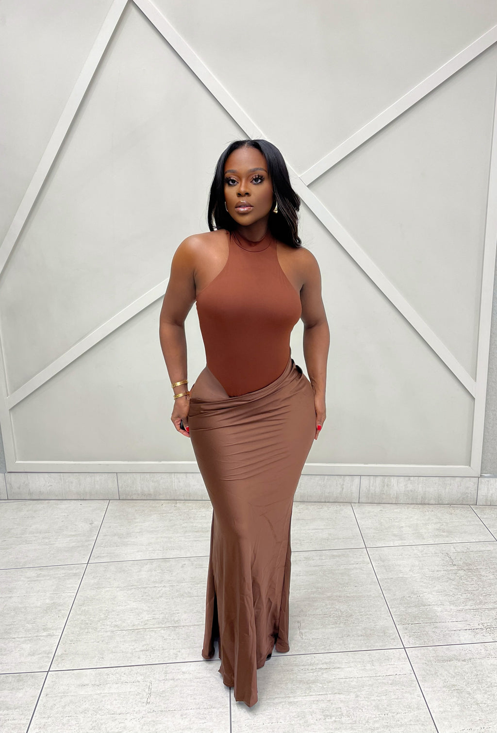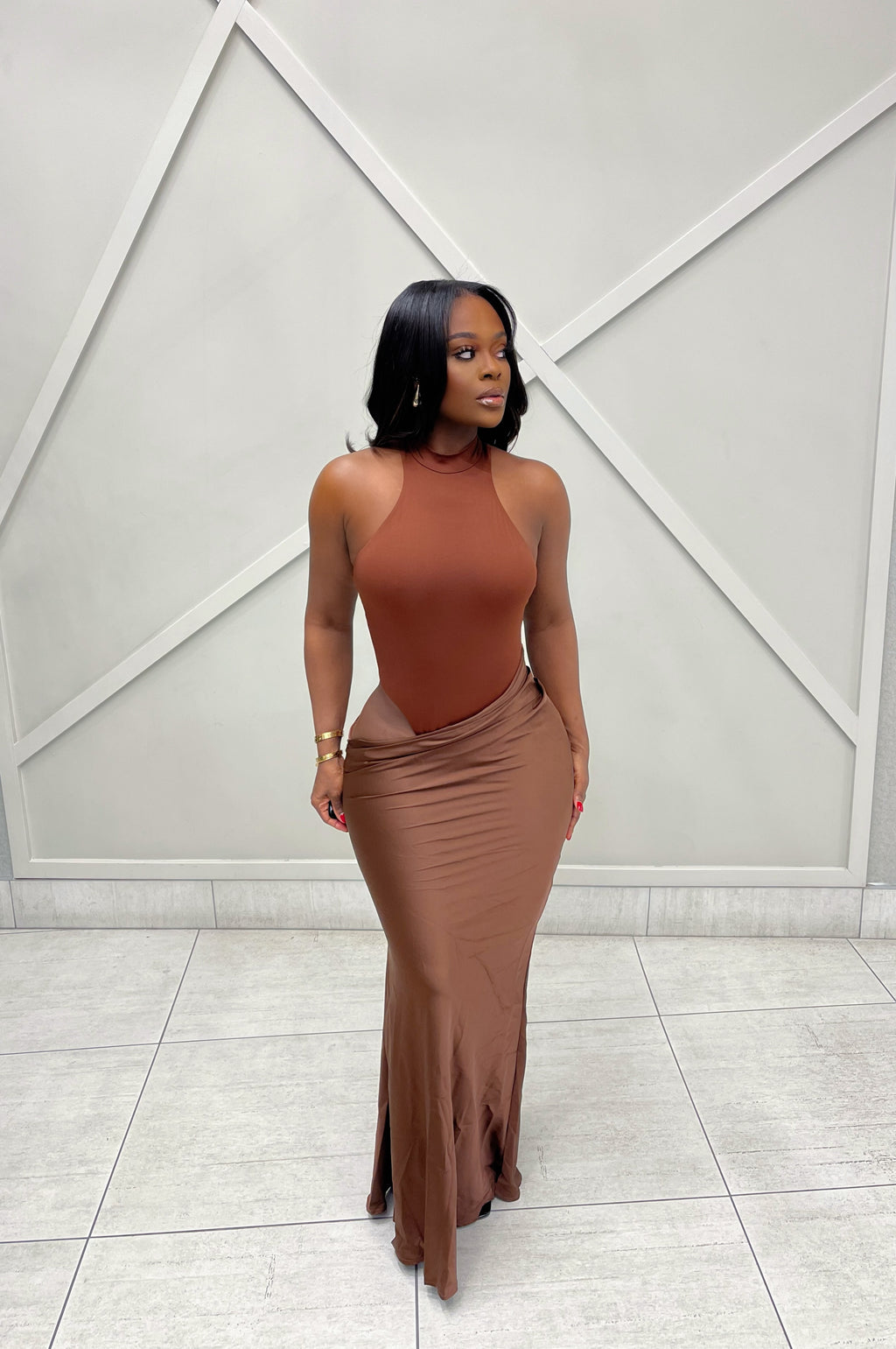 “MELA” MAXI DRESS- BROWN